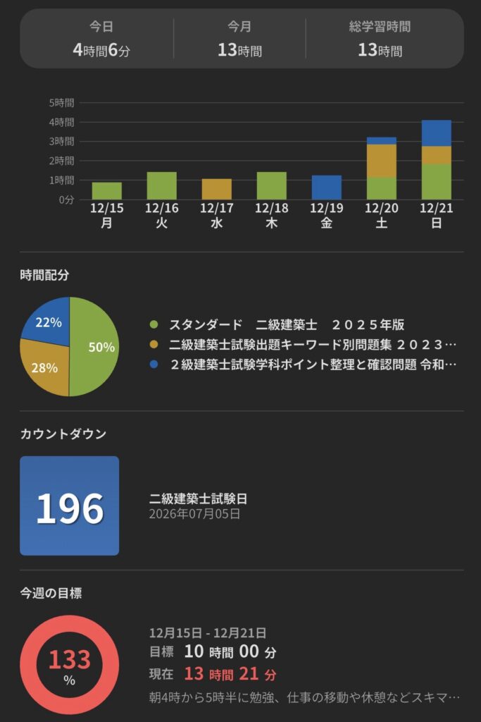 今週は13時間21分、隙間時間には日本建築史や建築家のインタビューや対談を聞いて建築脳を育てています