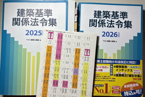 前回、2026年度の建築基準関係法令集を買い換えた話を記載しました。 ということで早速インデックス貼りからスタートしましたがトータル4回目になるとただ貼るよりは位置を理解して貼ろうとインデックスの文字がページのどこにある … 続きを読む 2026年度のTAC建築基準関係法令集のインデックスを貼る作業時間