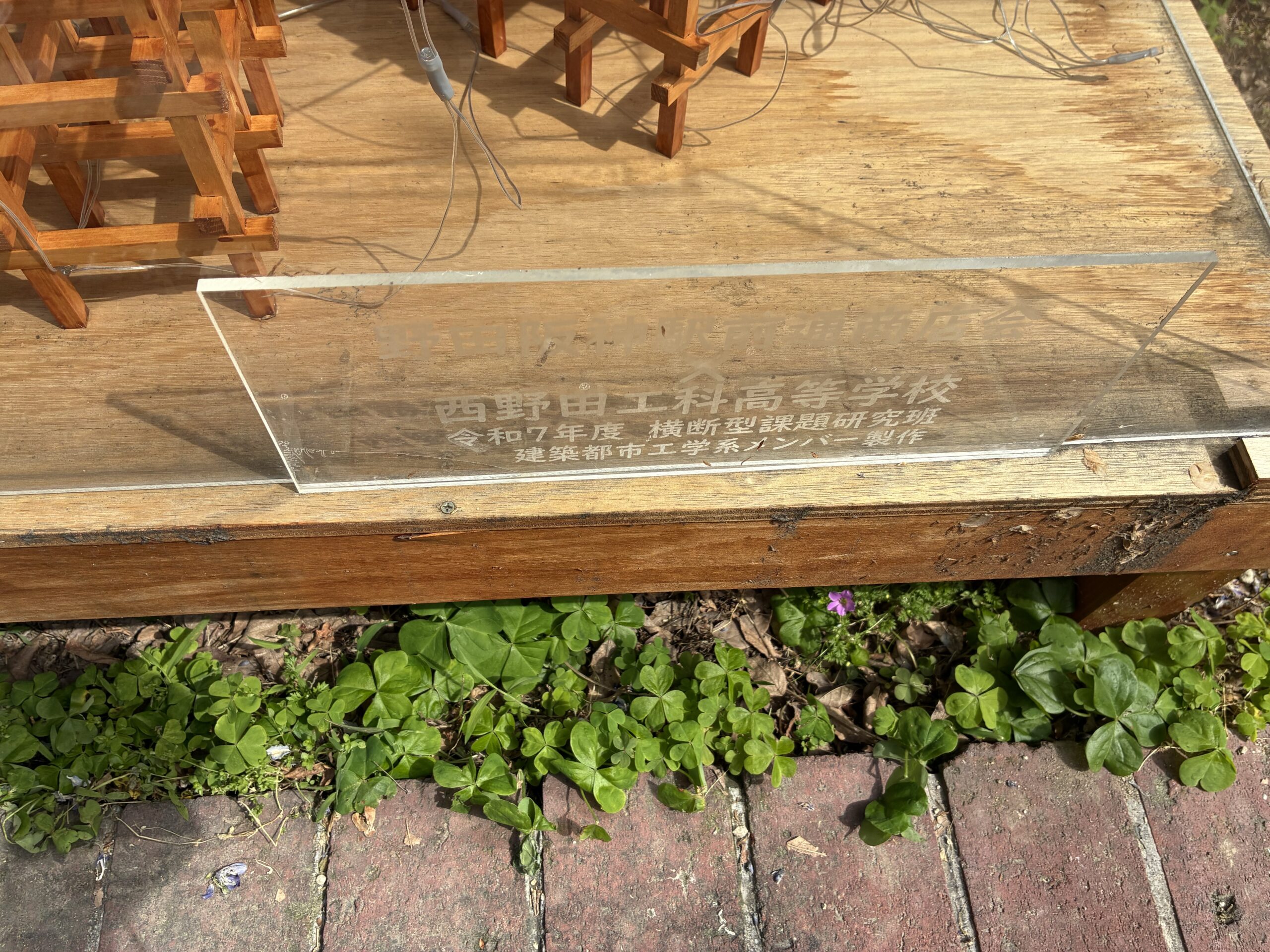 知らなかったので偶然見学できました。また、野田阪神駅前商店街さんと令和7年度の西野田工科高等学校の横断型模型研究班建築都市工学系メンバーの皆さんが製作した大屋根リングの模型が展示されていました。夜間は光るのかな?